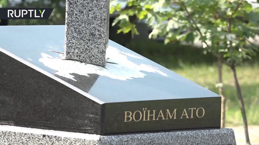 В Киеве открыли памятник бойцам АТО в виде меча, пронзившего карту России